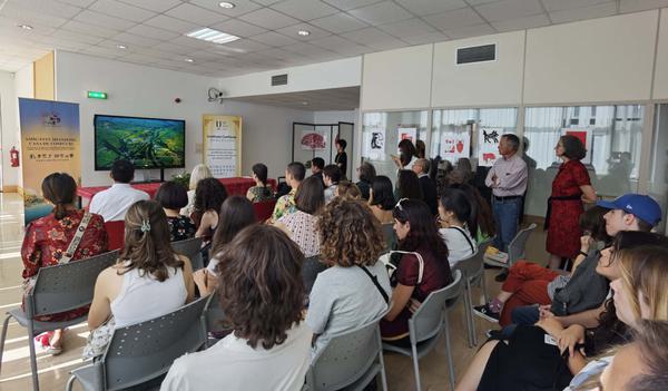 中方院长外方院长推介会 7月6日,里斯本大学孔子学院成功举办2023年“开放日”系列活动,并与山东省文旅厅共同举办“孔子家乡 好客山东”文旅推介会。中国驻葡萄牙使馆文化参赞甘萍、山东省文化旅游厅二级巡视员付俊海、里斯本大学副校长西西莲·罗德里格斯、里斯本大学文学院副院长亚历山大·罗莎、里斯本大学孔子学院中外方院长以及来自安东尼奥艺术学校和孔子学院的学生100余人参加活动。在“开放日”活动期间,教师们不仅为前来咨询的各界人士介绍了新学期的课程安排,还开展了书法、茶艺、剪纸等文化体验活动,以增进来宾对中国文化的了解。现场展出了由里斯本安东尼奥艺术学校学生创作的40余幅中国剪纸作品。这些作品全部是在孔院社会班学员索菲亚精心指导下完成的,体现了学生们对中国文化内涵的深刻理解。里斯本安东尼奥艺术学校负责人在开展仪式上表示,感谢孔子学院为学生的剪纸作品提供了难得的展出机会,这对学生们是一种莫大的鼓励,希望孔子学院能继续为学生学习中国文化提供支持。活动期间,还举行了2022-2023学年社会班结业仪式。中外方院长为80余名学员颁发了结业证书。在“孔子家乡 好客山东”文旅推介会上,亚历山大·罗莎致欢迎