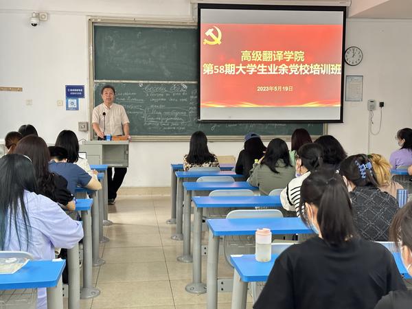 为全面学习党的二十大精神,深入开展学习贯彻习近平新时代中国特色社会主义思想主题教育,落实《2019-2023年全国党员教育培训工作规划》要求,大力推进党员队伍建设的系统化、规范化和科学化,切实提高党员发展质量,5月19日,高级翻译学院采取线上和线下相结合的方式举办第58期大学生业余党校。学院党委书记郭芃作党校开班仪式暨党课第一讲,学院全体党员、发展对象、入党积极分子共计200余人参加。学院党委书记郭芃以“调查研究是马列主义的传家宝,是我们党的传家宝”为题,围绕学习贯彻习近平新时代中国特色社会主义思想主题教育和大兴调查研究工作方案要求,围绕调查研究的定义、调查研究产生的过程、结合调查研究经典案例和方式方法、调查研究的启示4个方面展开讲解。学院党委副书记兼纪委书记以“新时代党的作风和纪律建设”为题,围绕什么是党的政治纪律和政治规矩,守纪律讲规矩的具体要求,准确把握党规党纪的深刻内涵,党员起到先锋引领作用四个方面开展讲解。 本期党校课程安排采取党课讲授、读书学习、观看视频、实践活动参观、交流座谈等多种方式开展。为了更好的促进就业工作,引导学生尽早确立职业目标,高级翻译学院也将学生的职业生涯规