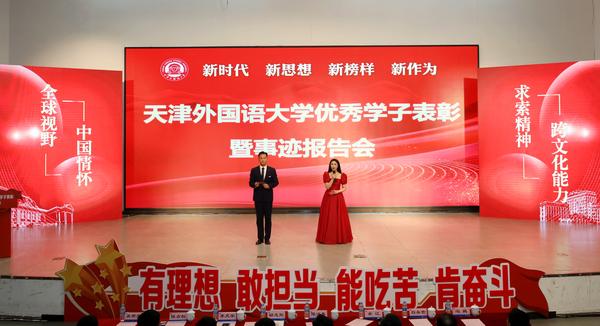 春潮澎湃启新程,奋楫扬帆正当时。4月13日上午,我校2022年优秀学子表彰暨事迹报告会在滨海校区主楼报告厅隆重举行。天津渤海供应链管理有限公司董事长李天学、三井住友银行(中国)有限公司副行长白永吉,校党委副书记、校长陈法春,校党委副书记胡志刚,校党委常委、副校长余江出席大会。校党委副书记、校长陈法春讲话校党委副书记胡志刚宣读《关于表彰2021-2022学年度学生先进集体和优秀个人的决定》为国家奖学金获得者代表颁发荣誉证书为市级各类奖学金和荣誉获得者代表 颁发荣誉证书为校长特别奖学金获得者代表颁发荣誉证书为校级十佳大学生代表颁发荣誉证书和奖杯为“渤海道德奖学金”获得者代表颁发荣誉证书为“三井住友奖学金”获得者代表颁奖获奖学生代表向在我校设立奖助学金的企业代表赠送感谢函报告会在庄严嘹亮的国歌声中拉开帷幕,在场师生观看我校2022年思政工作巡礼视频《凝心铸魂担使命 立德树人映初心》,回顾了一年来学校坚持以习近平新时代中国特色社会主义思想铸魂育人,持续推进“三全育人”综合改革,深度落实“五育并举”,大学生思想政治教育工作成果丰硕。胡志刚宣读了《关于表彰2021-2022学年度学生先进集体和优秀
