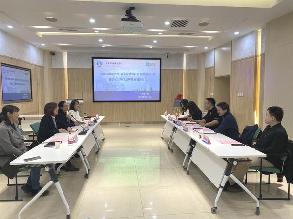 校企双方座谈交流校企人才培养基地揭牌为扎实开展访企拓岗促就业专项行动,充分发挥校企双方优势,为学生实习、实训、就业提供更大空间,培养更多高素质、高技能的应用型人才,英语学院与新东方教育科技集团达成了校企人才培养合作的初步意向。为进一步推动校企双方合作落地,3月22日下午,集团旗下天津新东方前途出国咨询有限公司、天津新东方培训学校有限公司、天津新东方无忧教育培训学校有限公司等3家企业负责人一行来访,举行校企人才培养基地揭牌仪式,并就人才培养、岗位需求等进行深入洽谈交流。校招生就业处处长于敬,英语学院党委书记刘海燕、党委副书记刘玥、团委书记、就业专员、毕业班辅导员参会。会议由刘玥主持。参会企业负责人依次介绍了企业基本情况,表达了对英语专业毕业生招聘的迫切需求,表示由于业务扩张和市场需求增长,企业面临非常大的人才缺口,特别是对于英语翻译、教学方面人才的需求量十分巨大,现场提供英语教师、英语翻译、规划师、管理师等专业对口岗位60余个。各负责人基于企业优势资源和人才需求的角度,从国际化意识培养、职业生涯规划指导、就业技能提升等方面,提出了人才培养和输送的诸多可行之策,为双方开展更多形式创新、内容