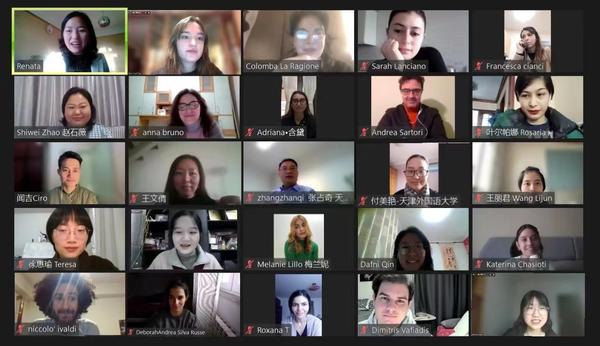 1月17日,由教育部中外语言交流合作中心主办、我校欧洲语言文化学院承办的“中国文化面面观”:“一带一路”地中海沿岸国家学生线上团组交流项目顺利闭营。国际合作与交流处、欧洲语言文化学院相关负责人及教师代表,与来自希腊、意大利、塞浦路斯等国的百余名学员齐聚云端,共同见证此次活动的完美收官。 闭营仪式上播放了学员成果视频集锦。本次汉语桥项目课程涵盖中国“四大发明”中的印刷术、造纸术,国家级非物质文化遗产狗不理包子、天津知名景点五大道和意大利风情街、天津传统曲艺,以及中国审美、传统服饰、中国礼仪、商务宴请、书信语言等内容。授课教师们将语言学习与文化交流有机融合,不仅提高了学员们的汉语水平,而且帮助学生深层次多维度了解中国文化。课堂上,学员们用自己的笔和纸书写了我校校长陈法春在开幕式上为大家献上的春联“黑兔带路,白鹰引船”。 欧洲语言文化学院副院长王文倩对本次线上团组交流项目圆满收官表示祝贺。她指出,同学们虽然来自不同国家,但都心怀学习汉语、了解中国文化的梦想和追求。各位学员在课堂上学习热情高涨,与授课教师积极互动,按时提交作业,展示自己的学习成果,分享在本次课程中的心得与收获。各国学员通过为期