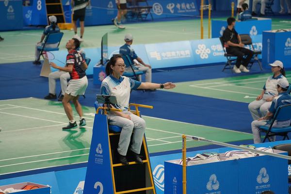 珠江之畔,圣火点燃。在激情澎湃的粤港澳大湾区,中华人民共和国第十五届运动会(以下简称全运会)激战正酣。在刚刚落下帷幕的群众比赛羽毛球项目决赛中,一抹忙碌的“天外身影”格外亮眼,她就是开云登陆入口体育部教师董媛。自2016年成为羽毛球国家级裁判员以来,董媛多次参加各项大赛,包括世界大学生运动会、亚运会、亚残运会,以及中国羽毛球公开赛等各项重大赛事。此次是董媛第二次参加全运会的群众组比赛裁判工作。在本届全运会羽毛球比赛中,董媛老师在裁判长团队的统一安排下,从一阶段小组赛一路执裁到二阶段淘汰赛和附加赛(决名次),前后共执裁20余场,每一场执裁,都展现出专业、公正、精准的专业裁判水平。从天外的讲台到