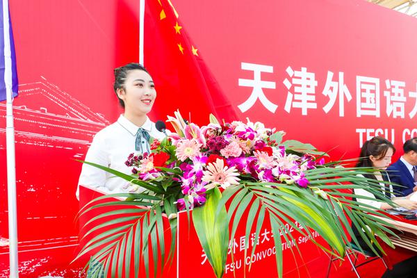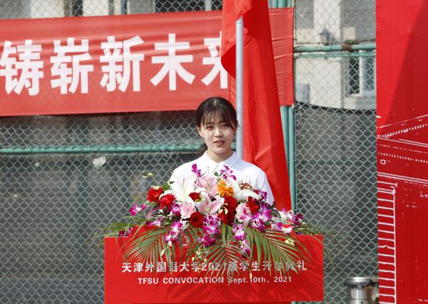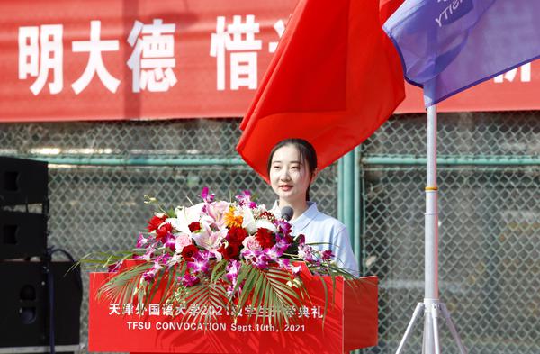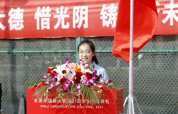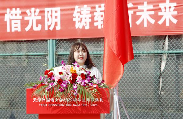 新生代表英语学院路祎玮发言