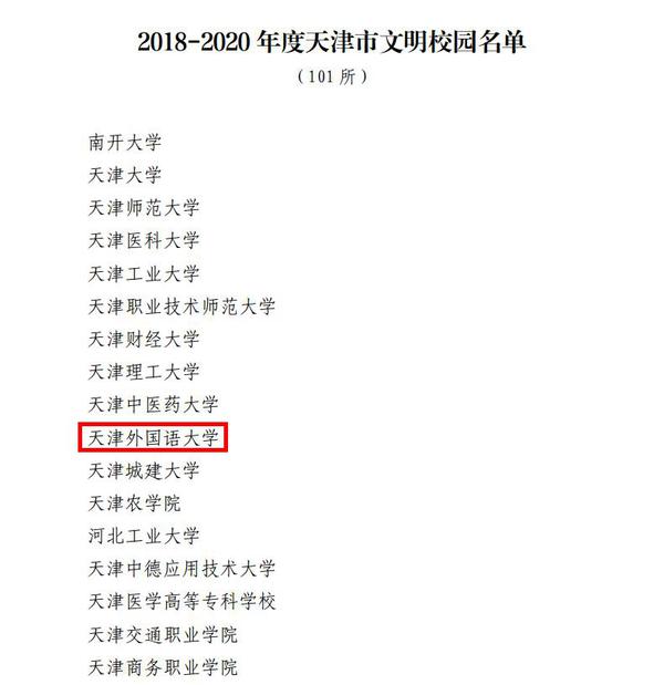 日前,天津市精神文明建设委员会公布了《关于表彰新一届天津市精神文明建设先进的决定》,我校获得”2018-2020年度天津市文明校园”荣誉称号,这是继获评“第一届天津市文明校园”后,再次获得这一殊荣。