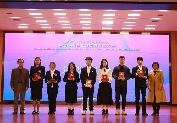 10月30日,由杭州亚组委、中国日报社、中国移动联合主办的杭州2022年第19届亚运会“中国移动杯亚运英语之星”大赛------天津赛区复赛在我校马场道校区大学生活动中心圆满落幕。教务处处长刘建喜教授、英语学院院长项成东教授、通识教育学院刘保春副教授、英语学院副院长李媛霞副教授受邀担任大赛评委。