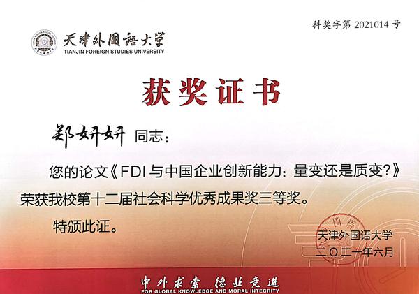 《FDI与中国企业创新能力:量变还是质变?》发表于《南开学报(哲学社会科学版)》(ISSN:1001-4667),CSSCI中文社会科学引文索引(2019-2020)来源期刊,北京大学《中文核心期刊要目总览》来源期刊。文章刊发在2020年第4期。
