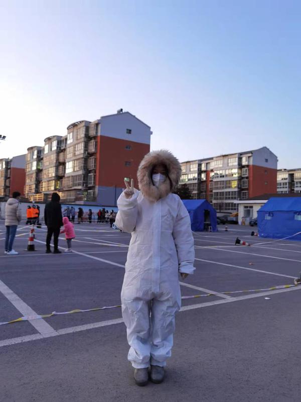 此次志愿活动,李萌的职责是看着每组10个检测者全部进行核酸检测,不能超过10人,也不能少于10人。在北风呼呼吹的时候,不断地将倒下的围栏扶起来,把医护工作者帐篷的帘子挂上去。她的工作很简单,但她很认真,她深知疫情防控就是将每件看似简单的事情做好,不放过任何细节,只有每个人都找准自己的位置,站好每一班岗,才会有整体的高效与流畅。