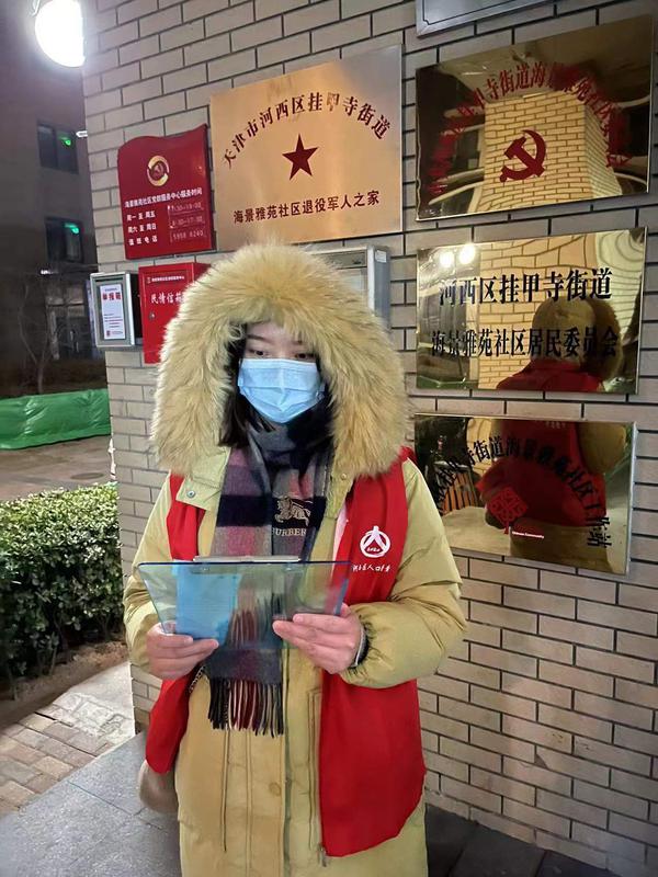 欧洲语言文化学院党委副书记兼纪委书记韩菲一边负责学院全体学生的疫情管理和频繁的数据更新与统计,一边作为网格长参与社区疫情管理。为了让社区的邻居们能够减少排队时间,她挨家挨户统计核酸检测人数,核算喊人的时间具体到分钟,精细化管理使居民排队等候时间从几个小时缩减到几分钟,得到物业和邻居们的好评。学院西班牙语系党员教师殷明身处防范区,从1月9日加入社区志愿服务行列,一直坚守岗位至今,已经协助社区完成了四轮筛查服务。他随时听候社区安排,准备防疫物资、调配社区居民、协助医护人员入户做核酸,哪个岗位需要人就去哪个岗位。小区一位年逾七十岁的老党支部书记亲手为殷明戴上了“共产党员”的袖标,这让他格外骄傲,更加动力十足,激动地说:“现在越来越多的人加入了社区大筛服务队伍,我们把党旗挂在了核酸检测的地方,老百姓看到党旗心里就踏实了。” 学院专职组织员田诗园接到海景雅苑社区居委会的电话后,第一时间加入了社区志愿者工作群。为避免不同社区人员跨社区进行筛查的混乱,她主动前往海景雅苑小区逐层挨家挨户敲门,共为276户居民提前发放检测凭条,不顾冬日的严寒,顾不上喝一口热水,耐心细致地解答居民们的问题,直到晚上11点多完成工作才回家。德语系党员教师丁雅静为网格区域居民建群,及时准确通知各轮次筛查相关信息,包括前期准备、具体时间等。她主动参加筛查信息技术培训,学习如何操作信息采集APP,组织群众有序参加核酸检测。很多居民在信息采集递出身份证时,都会真诚地说一声“辛苦了!”丁雅静笑着说:“凭着咱津城人的团结劲儿,我们一定能战胜疫情!”
