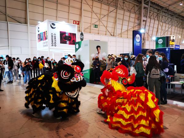 展会期间,孔子学院还特别邀请了里斯本舞狮表演团到展区进行表演。舞狮表演惟妙惟肖、出神入化,为现场的观众带来了全新的文化视觉享受,也为孔子学院及里斯本大学的展区凝聚了超高人气。