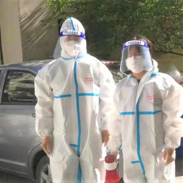 体育部教师周永华安排好家中怀孕的妻子和年幼的女儿,第一时间向社区报到,冒着酷暑,穿上防护服,协助居委会分类整理社区居民数据,科学安排志愿者分组入户通知居民分批次下楼做核酸,减少居民等待时间,维护核酸筛查现场秩序。几个小时下来,尽管汗水浸透了衣衫,他和志愿者们却一直坚守在社区抗疫第一线,用脚步将一张无形的“疫情防控网”织得结结实实。