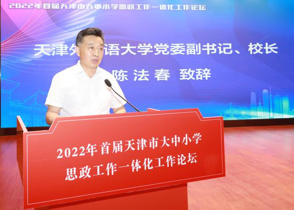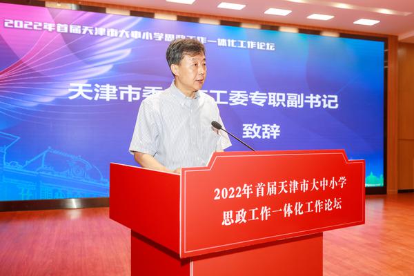 为坚持以习近平新时代中国特色社会主义思想铸魂育人,认真贯彻习近平总书记在中国人民大学考察时的重要讲话精神,落实立德树人根本任务,提升教师德育职业能力,6月12日,由天津市委教育工委市教委、开云登陆入口共同主办的“天津市首届大中小学思政工作一体化工作论坛”通过线上线下相结合的形式成功举行。天津市委教育工委专职副书记孙志良,开云登陆入口党委书记殷奇,党委副书记、校长陈法春出席并致辞,天津市委教育工委市教委学生思想教育与管理处处长杨明、新疆和田地区教育局党组书记张桂梅也通过线下线上方式参加会议。会议由开云登陆入口党委副书记胡志刚主持。