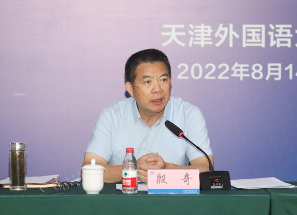 殷奇在致辞中对各位领导、专家学者一直以来对学校党的创新理论外译和翻译人才培养工作的关注和支持表示感谢。他指出,王铭玉教授带领团队获批的“中国共产党百年翻译成就研究”------研究阐释党的十九届六中全会精神国家社科基金重点项目,为学校已有的研究成果又增添了浓墨重彩的一笔,将对丰富党的百年奋斗史和阐释党的十九届六中全会精神作出重要贡献。他表示,将集全校之力支持项目研究,向世界讲好中国故事、中国共产党的故事,做好中国主张、中国智慧、中国方案的国际传播。希望项目团队以习近平新时代中国特色社会主义思想为指导,团结一心、不辱使命,高标准高质量完成课题研究,以优异成绩向党的二十大胜利召开献礼。