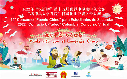 2022年第十五届世界中学生“汉语桥”中文比赛哥伦比亚“塔德奥大学孔院杯”云大赛海报