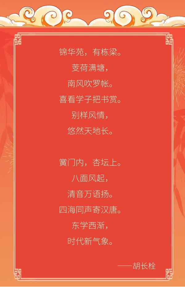 中央党史和文献研究院科研规划部副主任、中国马克思恩格斯研究会副秘书长胡长栓先生有感我校新生报到的盛况,赋诗一首,寄语新生。