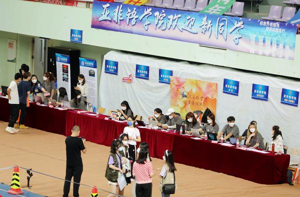 亚非语学院多个隔年招生的小语种专业------缅甸语、马来语、波斯语等专业迎来新生,学院班子全员到场,各专业教师在报到现场协助办理迎新事项。报到现场特别设置朋友圈留念板,并为每名新生精心准备了内含校园手绘地图、新生手册及迎新日程安排等物品的迎新提袋,助力新生快速了解和适应大学生活。