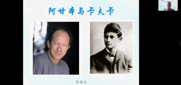 曾艳兵长期从事西方文学与中西文学比较研究、后现代文学文化研究、卡夫卡研究,是我国著名的卡夫卡研究专家。近年来,他对阿甘本和卡夫卡之间的重要关联展开了深入研究。讲座中,曾艳兵梳理了卡夫卡的改写、从阿甘本到卡夫卡、从卡夫卡到阿甘本等知识背景,从“证据源于一种语言分析”“法律与‘法X’之力”“生命转型成经文”三个方面展现了阿甘本对卡夫卡的研究和论述,阐述了阿甘本通过本雅明厘定了卡夫卡在当今社会的重要价值和现实意义,卡夫卡的小说是阿甘本理论著述最生动的注脚。