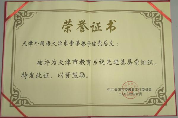 学院党总支荣获天津市教育系统先进基层党组织