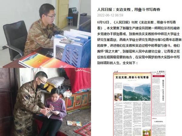 15名优秀毕业生前往西藏、新疆、甘肃等地参加西部计划志愿服务,其中,2019届西部计划志愿者刘春成获评第十三届“中国青年志愿者优秀个人奖”,并被《人民日报》等中央媒体报道。70余名学子光荣入伍。2019年学院44名师生赴新疆和田支教,赢得受援学校、教育主管部门、当地群众的认可。