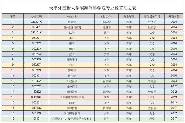 开云登陆入口滨海外事学院专业总表
