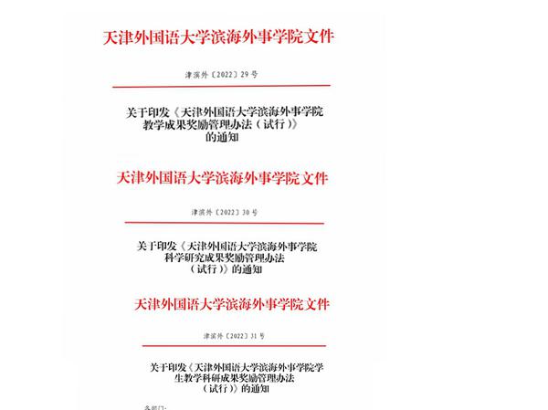 学院教职工科研能力逐步提升。成立科研部统筹全院科研工作,出台《开云登陆入口滨海外事学院科学研究成果奖励管理办法(试行)》等系列文件,加大科研奖励。近年来,教师获批科研项目百余项,其中,2项课题获批国家社科基金,2项课题获批市教委高等学校本科教学质量与教学改革研究计划项目立项,2项天津市社科项目,2项课题获批天津市教育工作重点调研课题立项;1篇论文获“天津市高校思想政治工作优秀论文”评选二等奖。出台学生科研奖励系列文件,推动师生科研联动。