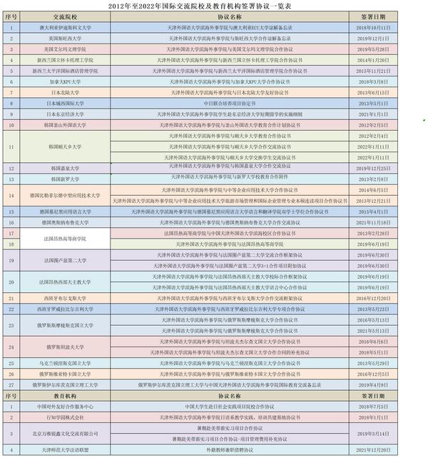 2012年至2022年国际交流院校及教育机构签署协议一览表