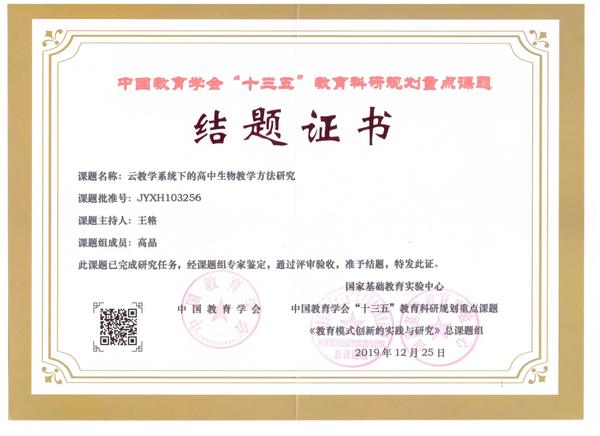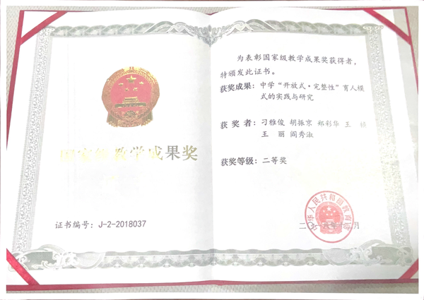 中学“开放式·完整性育人模式的实践与研究”荣获国家级教学成果二等奖)