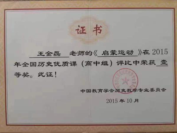 王金磊老师荣获全国历史优质课一等奖