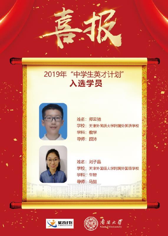 杨嘉琦同学荣获天津市“最美中学生”标兵称号
