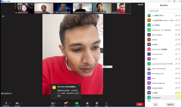 程幼强邀请学员代表宝音(Batsuuri Buyanzaya)和萨义德(Mohammed Saddam Ahmed Saeed)发言,并同参与仪式的学员、嘉宾共同赏析经典中文歌曲《珊瑚颂》。