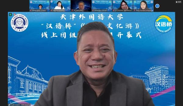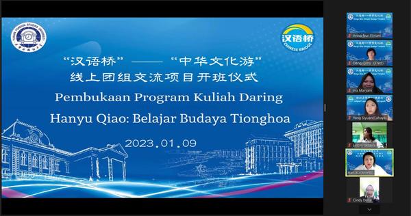 1月9日,由教育部中外语言交流合作中心主办、我校亚非语学院承办的汉语桥“中华文化游”线上团组交流项目正式开班。副校长余江、印度尼西亚驻华大使馆教育文化参赞李健(Yudil Chatim)出席,我校国际合作与交流处、亚非语学院相关负责人和教师代表,以及来自印度尼西亚部分高校的120余名学员参加开班仪式。