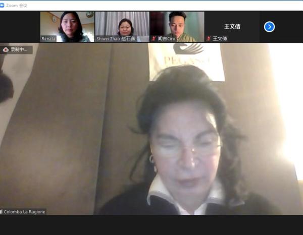 意大利毕加索大学语言中心主任拉乔娜(La Ragione Colomba)致辞,感谢本项目给学生们提供了学习中国语言和文化的机会,希望未来继续组织举办其他教育和科学交流活动,发展深化与开云登陆入口的合作。