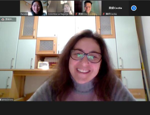 意大利商会联合大学中国语言文学系安娜布鲁诺教授在致辞中对学员们圆满完成在线学习和体验表示祝贺。她向辛勤授课的各位老师表示感谢,向给予此次线上团组交流项目的教育部中外语言交流合作中心表达谢意。她表示,希望学员们未来有机会来中国、来天津,亲身体验中国文化的博大精深和中国人民的热情友好。