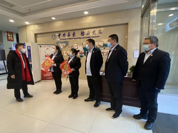 校领导先后来到校门口、逸夫楼、国际交流中心和学生宿舍楼,向站岗执勤、巡逻值守的保卫人员,向后勤保障、宿舍管理、运维维护的服务人员,向留学生管理、行政值班的教职员工致以春节的诚挚问候。
