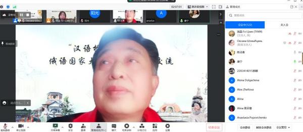 北京时间1月29日晚,由教育部中外语言交流合作中心主办、我校欧洲语言文化学院承办的“汉语桥·龙跃云津”俄语国家大学生线上交流项目顺利举行开营仪式。校长陈法春、俄罗斯人民友谊大学外国语学院汉语专业负责人特洛菲莫娃、俄罗斯伏尔加格勒国立社会师范大学孔子学院中方院长宁怀颖,我校国际合作与交流处、欧洲语言文化学院相关负责人,以及来自俄罗斯人民友谊大学、南乌拉尔国立大学、莫斯科市立师范大学、车里雅宾斯克国立大学等多所俄罗斯院校的百余名学员齐聚云端,共同开启为期8天的汉语文化体验之旅。