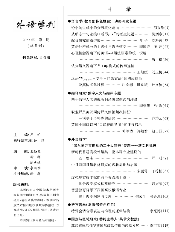 学术论文《中日两国日语教材研究的现状对比与启示》系教育部人文社会科学研究一般项目“基于语料库的中国高校日语专业教材量化评测研究”(19YJA740088)的阶段性成果,全文1.3万字,发表于期刊《外语学刊》2023年第1期,该刊为CSSCI(扩展版)、北大核心、AMI核心期刊,ISSN号为1000-0100。