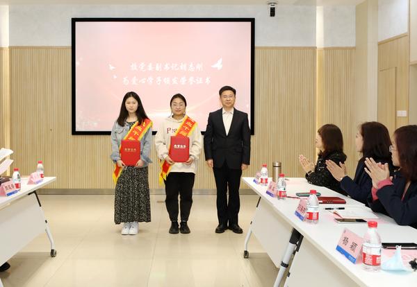 校党委副书记胡志刚为成功捐献爱心学子颁发荣誉证书