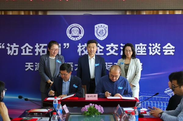 国际商学院党委书记杨颖介绍了学院专业建设体系、人才培养模式、毕业生就业、学生专业实习实践等情况。她表示,学院一直以来坚持促进毕业生高质量就业,在新形势下希望校企双方建立良好的沟通机制,在学生实习实践、课程建设、毕业生就业等方面建立长期稳定合作关系。国际商学院党委副书记、院长郭建校与校友企业天津爱仕凯睿科技发展有限公司总经理倪嘉辉、中唐方德(天津)科技发展有限公司创始人唐艳芳签署合作协议。杨颖为两家校友企业授牌。国际商学院副院长牛蕊为10家企业代表颁发行业导师聘书。