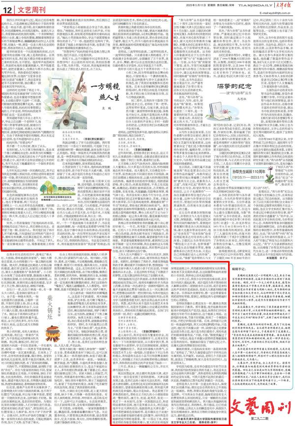 5月11日,《天津日报》“文艺副刊”栏目整版刊发我校国际传媒学院学生袁瞩创作的散文《一方明镜照人生》。这篇散文由国际传媒学院侯平老师推荐,经“文艺副刊”编辑采纳。在文中,作者回忆了从小到大跟随作者的京胡老师郑先生学习的点滴日常的画面,老师在教授京胡的同时也给予作者带来的精神指引,以及京胡、京剧等传统戏曲艺术对于作者人生的重要影响和意义。