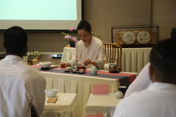 国际商学院党委副书记、副院长刘斌斌介绍茶文化体验课