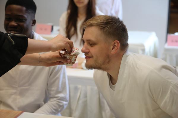学生们品尝自己泡的茶