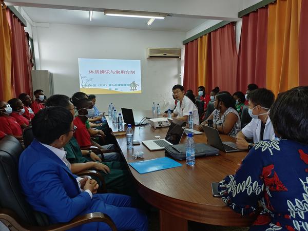 致辞结束后,第24批援加蓬医疗队队员童毅作了《体质辨识与常用方剂》的专题讲座。