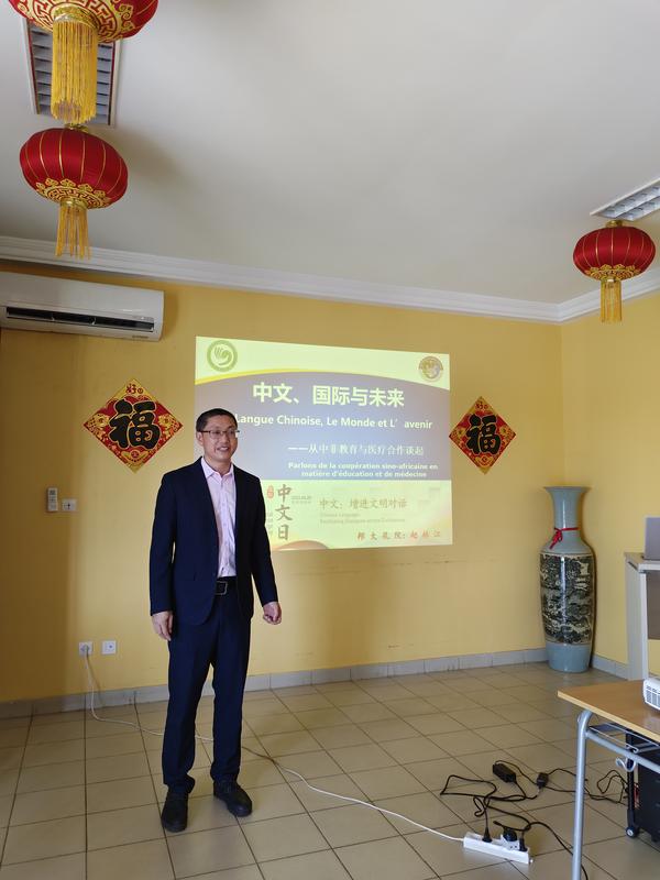 日前,邦戈大学孔子学院成功举办“国际中文日”活动,本次中文日主题是“中文:增进文明对话”。中国驻加蓬大使馆公参佟心平、邦戈大学校长苏玛奥、加蓬华侨华人协会会长唐明海、中国援加蓬医疗队队长赵智成、孔子学院中加方负责人、邦戈大学职能部门负责人出席此次活动。