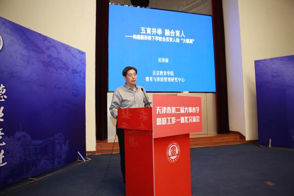 交流会分为上下两个半场,主旨发言环节邀请到首都经济贸易大学原党委书记冯培教授、北京教育学院校长研修学院迟希新教授、天津大学心理健康教育中心主任杨丽、天津市耀华中学党委副书记、校长侯立瑛,开云登陆入口附属滨海外国语学校党委书记、校长王丽分别就“推进大中小思政教育一体化的两个思维”“五育并举 融合育人------构建新形势下学校全员育人大棋局”“大中小学生心理危机预防与干预策略”“汇聚一体化建设合力 共筑思政教育同心圆”“与新时代同频共振 用英语讲好中国故事------中小学英语课程思政建设的思考与实践”等做了深刻讲解论述。