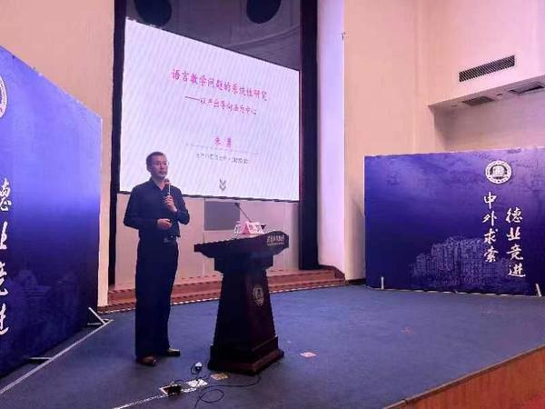 讲座中,朱勇阐述了语言教学法及理论与实践创新中的系统性问题,为师生理顺理论框架及脉络,以通用教学环节存在的学用分离问题为切入点,详细介绍了“产出导向法”(POA)的教学过程,并结合应用实践全面讲解了这一创新性教学法的教学理念、假设与流程,生动再现了理论与实践互动、互塑的发展过程,阐明了理论落实于实践、实践检验理论的科学研究思路。他以《新时代汉语口语》系列教材为例,细致展示了“产出导向法”(POA)落地汉语教学实践的过程细节,为实践教学提出操作性强的有益建议。朱勇和我校师生进行了深入互动,对师生关心的宏观理论与微观教学的关系与平衡、教材编写设计理念及教材内容的科学性与平衡性等问题给予了具体指导。