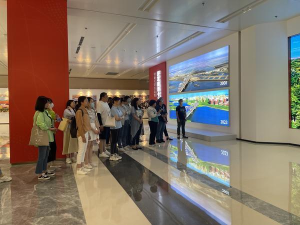 在中新天津生态城,老师们通过参观中新天津生态城开发建设十五周年成果展,深刻感受到习近平新时代中国特色社会主义思想的实践伟力,深入了解了绿色生态之城、智慧创新之城、开放合作之城、活力幸福之城的建设成果。纷纷表示,对未来的美好生活充满憧憬,要立足岗位,为奋力开创全面建设社会主义现代化大都市新局面添砖加瓦、贡献力量。