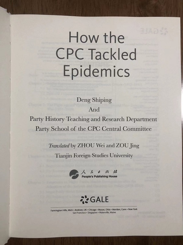 近日,由我校中国特色社会主义理论体系国际传播外译研究中心副主任、英语学院翻译系副主任周薇和青年教师邹静承担翻译的《中国共产党防治重大疫病的历史与经验》英文版由美国圣智集团盖尔公司在海外出版发行。该书由中共中央党校(国家行政学院)中共党史教研部编著,中文版由人民出版社出版。