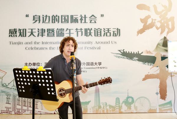 天津经济广播《老外视线》主持人于霁丹为“身边的国际社会”讲授了端午节的由来及相关文化传统,并专门介绍了具有天津特色的端午习俗。现场还邀请有关专家讲授展示了“中国传统制茶技艺及其相关习俗”。中外师生一起赏龙舟、包粽子、论茶道、赏民俗、品美食,并献上精彩纷呈的文艺演出,共同度过了一个欢乐祥和、具有天津味儿的端午佳节。“身边的国际社会”纷纷表示,此次活动令他们印象深刻,以后会更加主动深入地了解天津、感知天津、融入天津,增进文化交流。