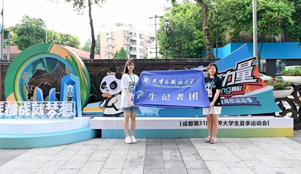 “接到通知的那一瞬直接懵掉了,缓过神来后狂喜,我可以去大运会现场啦!”龚郅譞来自距离成都1540公里的安徽,此前从未去过四川。而熊梓岑是个川妹子,成都是她熟悉的家乡,但为自己家乡作宣传报道还是第一次,此次机会令她倍感振奋和自豪。熊梓岑的妈妈是一位专业记者,她曾在2008年奥运火炬传递广安站担任了全球直播主持人。2023年成都大运会,熊梓岑接过妈妈的传媒“圣火”,肩负起了校媒记者的职责,探访、报道大运会,“感觉自己身上有一种使命感,天津高校只去了三位校媒记者,天外占两个,这是对我们以往校媒工作的认可和鼓励,我们一定用脚步丈量大地,用青春为时代发声!”