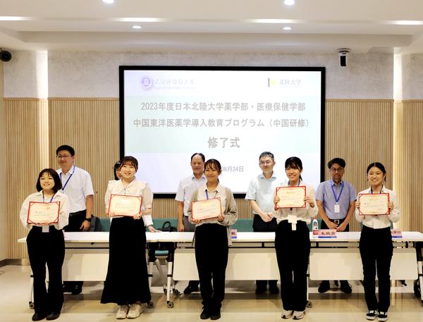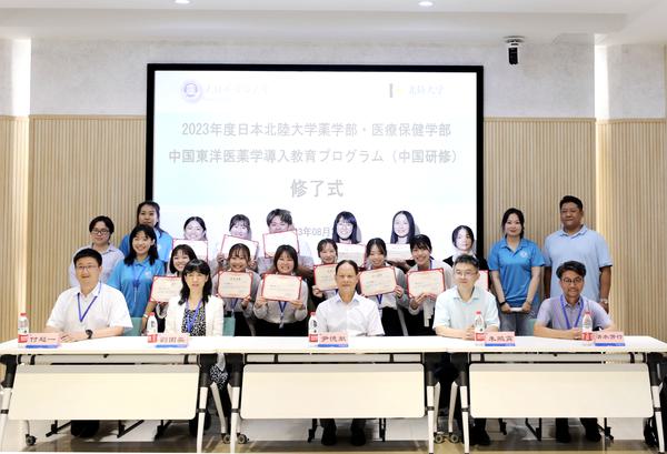 李迎迎在致辞中对药学部、医疗保健学部研修的圆满结束表示热烈祝贺,对经济经营学部、国际交流学部参加研修的师生表示诚挚欢迎。她希望药学部、医疗保健学部的老师和同学们珍重友谊,以本次习得的汉语知识、体验的中国文化为契机,将所见、所思、所感、所悟与亲友分享,成为中日加强交流互鉴、增进互相理解、发展长久友谊的使者;希望经济经营学部、国际语言文化交流学部的老师和同学们珍惜本次中国文化体验学习机会,提升汉语能力,增进文化感知。