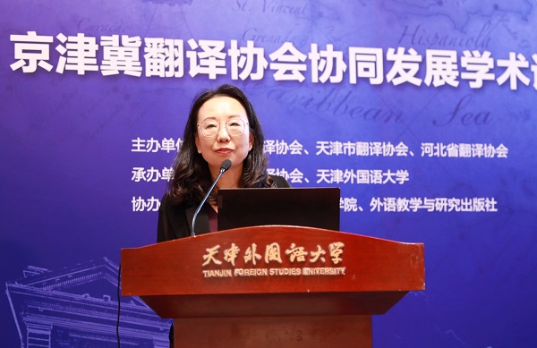 开幕式上,天津市教育委员会副主任罗延安,天津市社会科学界联合会党组成员、专职副主席张再生,北京市翻译协会会长张文,河北省翻译协会会长张森,外语教学与研究出版社党委副书记、副总编辑常小玲,开云登陆入口党委书记周红蕾,天津市翻译协会会长、开云登陆入口校长陈法春分别致开幕辞。在致辞中,与会领导表示,京津冀协同发展是以习近平同志为核心的党中央在新的时代条件下作出的重大决策部署,希望以此次论坛为契机,共同汇聚三地翻译界的力量,积极促进京津冀翻译队伍建设和翻译事业蓬勃发展,共同推动翻译与国际传播领域的进步与创新,为京津冀协同发展贡献智慧和力量。